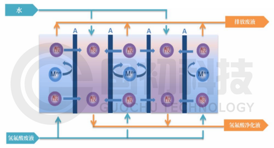 以浓度差及电荷吸引力为驱动力来实现酸的迁移,无需压力运行成本极低。